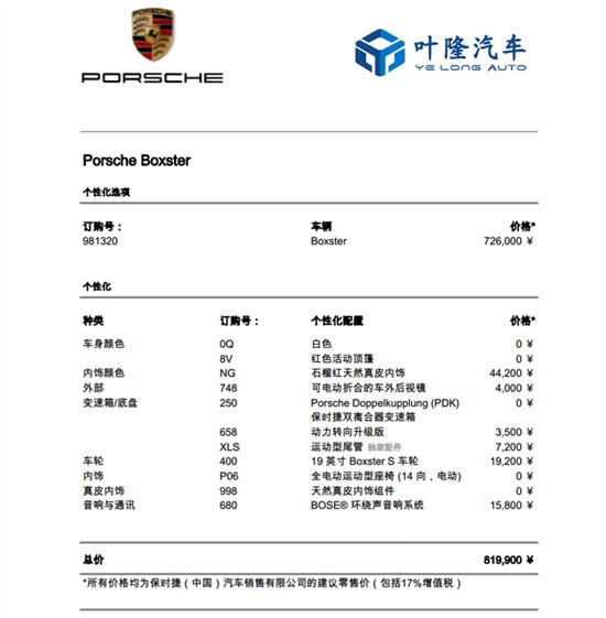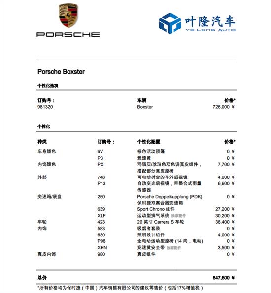 實拍(pāi)的(de)boxster選配了(le)3.02萬的(de)運動排氣系統,這(zhè)可(kě)是這(zhè)輛車的(de)獨家配件哦