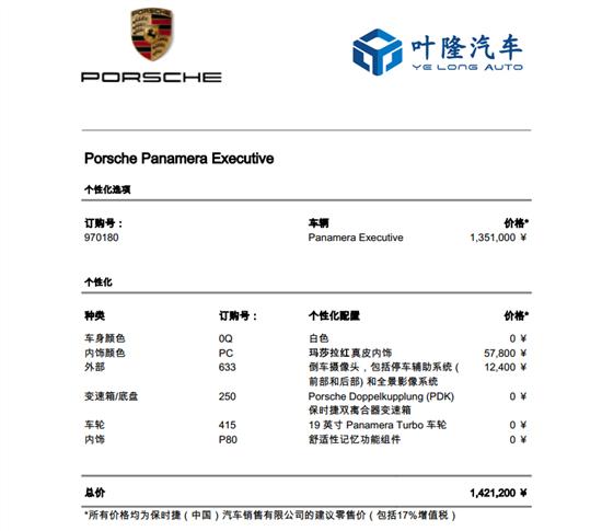 Panamera Executive 3.0T | 135.10 | 104.03 | 31.07 | 一車一配,一車一價,均在配置價基礎上再優惠送20000元裝潢 |