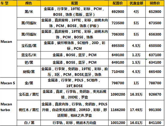 近日,編輯從上海葉隆之信保時(shí)捷中心了(le)解到,保時(shí)捷macan最高(gāo)降17.49萬,另送豪華精美(měi)裝潢,到店(diàn)詳談還(hái)有更多(duō)優惠,有意向的(de)朋友可(kě)打電話(huà)詳細咨詢。