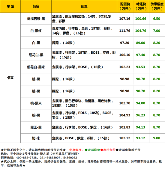 葉隆保時(shí)捷之星活動促銷,展廳有一款罕見的(de)钯色卡宴,低價優惠,歡迎來(lái)購(gòu)!貴賓熱(rè)線:400-888-7738。