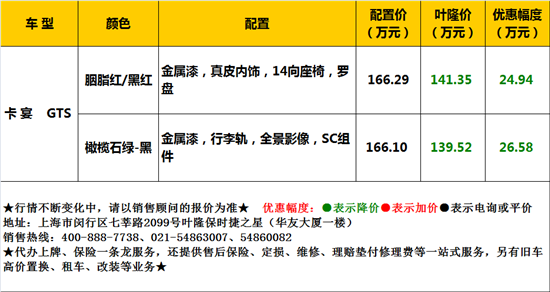 或許每個(gè)男(nán)人(rén)心中都夢寐以求擁有一台高(gāo)性能SUV,開著(zhe)它以風馳電掣般的(de)速度馳騁,腳下(xià)的(de)再坎坷不平的(de)路也(yě)阻擋不了(le)我們前進的(de)步伐,高(gāo)坐(zuò)姿可(kě)以讓駕駛者俯視旁邊的(de)一切,體驗這(zhè)行走天地間的(de)灑脫。葉隆有現車橄榄石綠(lǜ)卡宴GTS,優惠促銷,歡迎來(lái)購(gòu)!